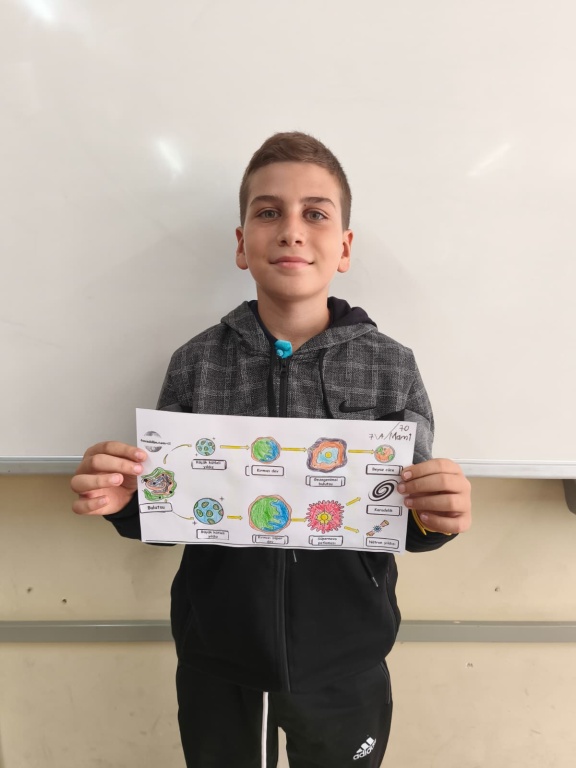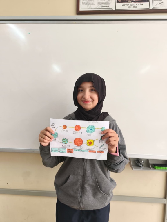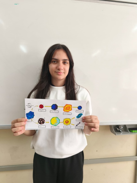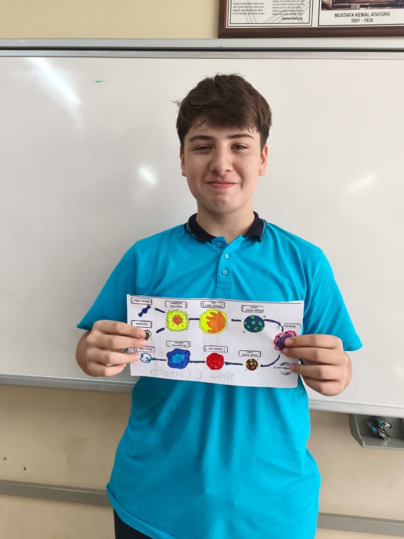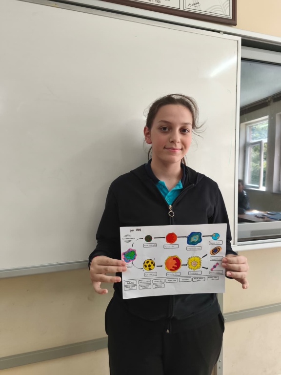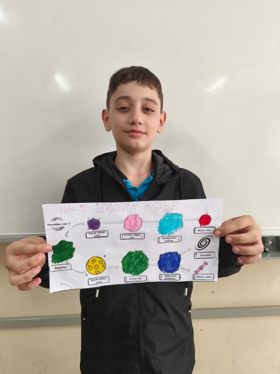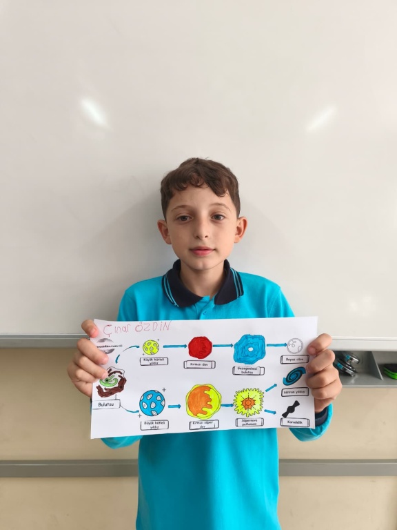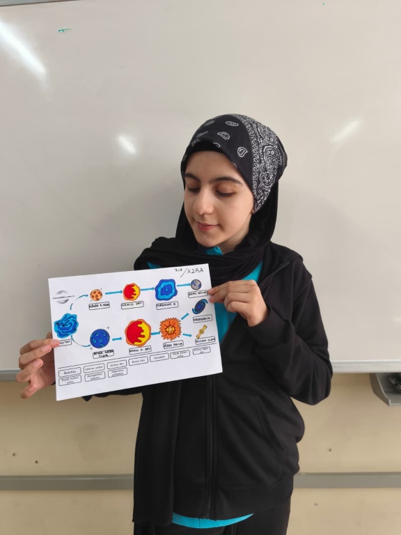/A sınıfı öğrencileri, öğretmenleri Ebru Ayar rehberliğinde “Yıldızların Yaşam Öyküsü” etkinliği gerçekleştirdi. Öğrenciler, yıldızların oluşumundan sönmesine kadar geçen süreci görseller ve uygulamalarla inceleyerek evrenin gizemli yapısını keşfettiler.